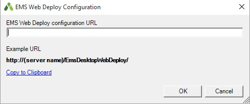 If your computer does not already have a URL saved, an EMS Web Deploy Configuration screen displays.